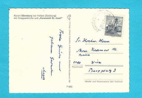 AK Kurort Dürrnberg bei Hallein mit Knappenkirche und Kuranstalt St. Josef. Gelaufen. Großformat. Verlag: Cosy. Nummeriert: F 665. Zustand: Knick am linken Rand etwas unterhalb der Mitte, sonst O.k.