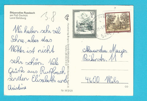 AK Skiparadies Russbach am Paß Gschütt. Gelaufen. Großformat. Verlag: Cosy. Nummeriert: 2121. Zustand: linkes oberes Eck geknickt.