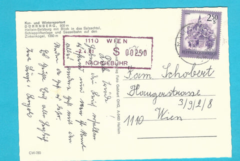 AK Kur- und Wintersportort Dürrnberg. Gelaufen. Großformat. Verlag: Gebhart. Nummeriert: CW 785. Zustand: linkes oberes Eck geknickt.
