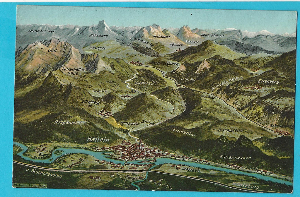 Panorama-AK Hallein. Ungelaufen. Kleinformat. Verlag: Brandstätter. Zustand: gut, linkes unteres Eck angeknickt.