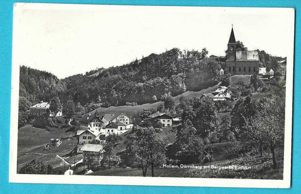 AK Hallein, Dürrnberg mit Bergwerk-Einfahrt. Gelaufen. Kleinformat. Verlag: Jurischek. Nummeriert: 31833. Zustand: linkes oberes und rechtes unteres Eck geknickt.
