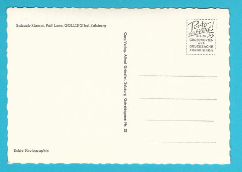 AK Salzach-Klamm, Paß Lueg, Golling bei Salzburg. Ungelaufen. Großformat. Verlag: Cosy. Nummeriert: 2119. Zustand: gut.