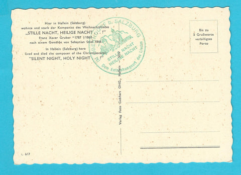 AK Hallein. Hier wohnte und starb der Komponist des Weihnachtsliedes Stille Nacht, Heilige Nacht Franz Xaver Gruber. Ungelaufen. Großformat. Verlag: Gebhart. Nummeriert: C 617. Zustand: gut.