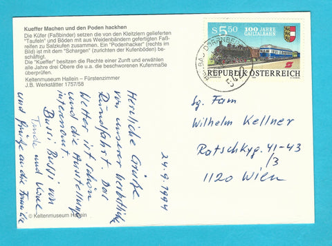 AK Keltenmuseum Hallein - Fürstenzimmer. Kueffer machen und den Poden hackhen. Gelaufen. Großformat. Zustand: Ecken und am unteren Rand geknickt.