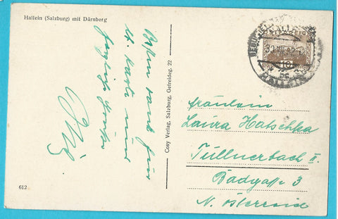 AK Hallein. Gelaufen. Kleinformat. Verlag: Cosy. Nummeriert: 612. Zustand: Knick am unteren Rand, leicht fleckig.