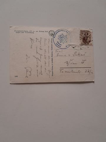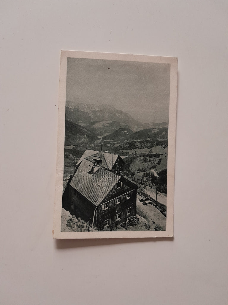 AK Purtschellerhaus am Hohen Göll gegen den Untersberg. Gelaufen. Kleinformat. Jurischek. Nummeriert: 5182. Zustand: stärker bestoßen.