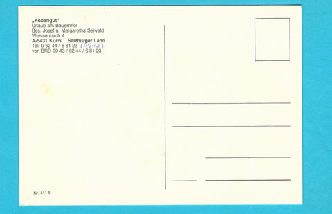 AK Kuchl. Köberlgut. Bes. Josef u. Margaretha Seiwald. Ungelaufen. Großformat. Nummeriert: 411 b. Zustand: gut.