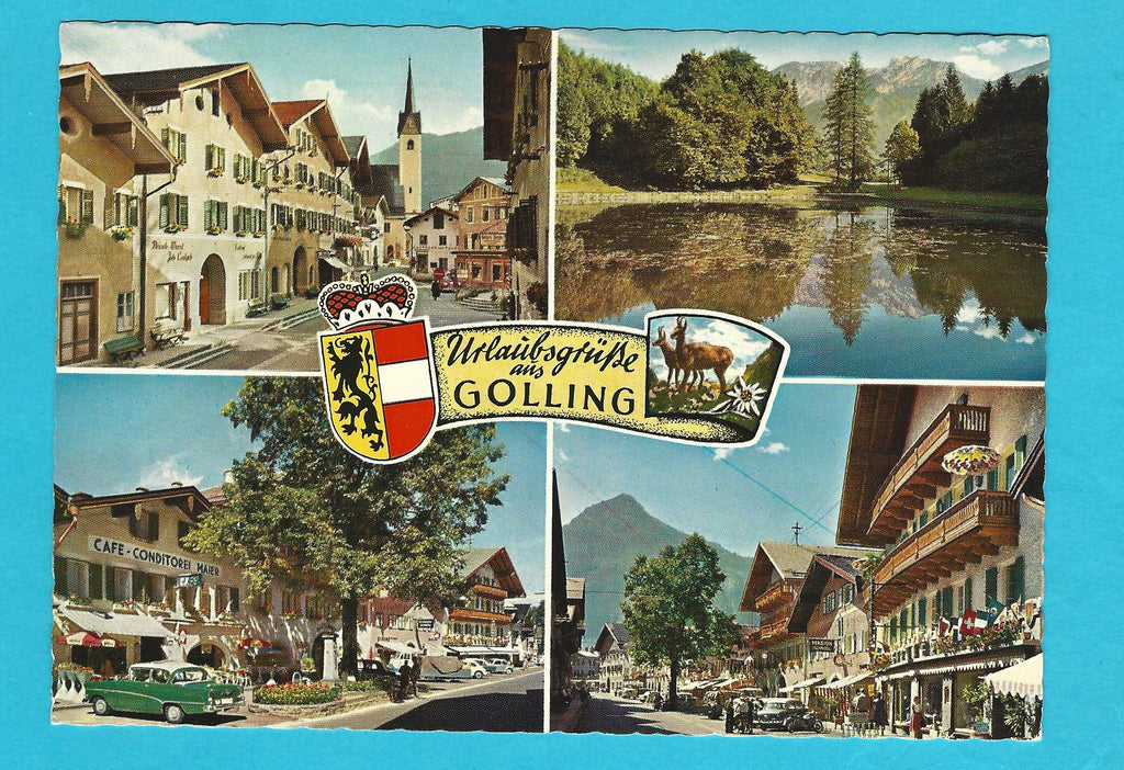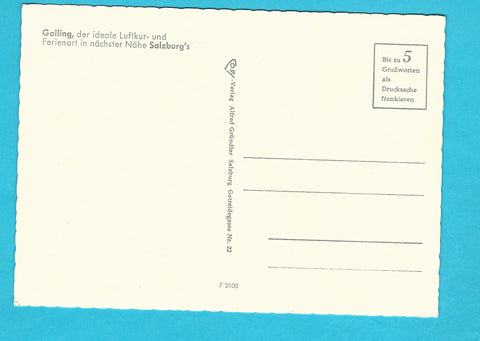 AK Urlaubsgrüße aus Golling. Ungelaufen. Großformat. Verlag: Cosy. Nummeriert: F 2100. Zustand: rechtes oberes Eck und linkes unteres Eck geknickt.