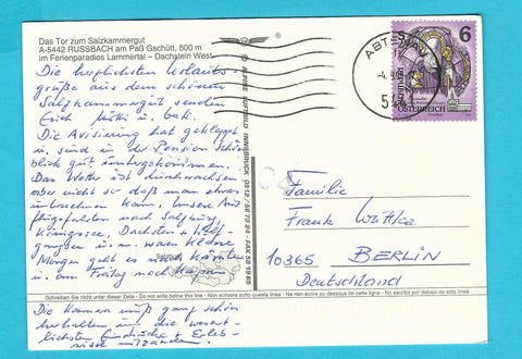 AK Russbach am Paß Gschütt. Gelaufen. Großformat. Verlag: Alpine Luftbild. Zustand: gut, rechtes oberes Eck geknickt.