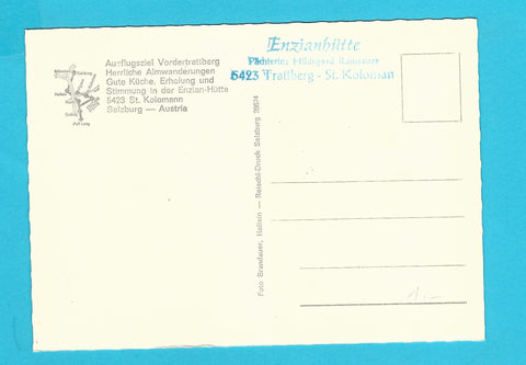 AK St. Koloman. Enzianhütte. Pächter: Hilde Ramsauer geb. Pröll. Trattberg. Ungelaufen. Großformat. Verlag: Brandauer. Zustand: fleckig.