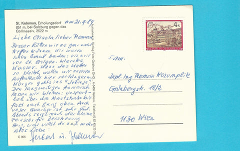 AK St. Koloman. Gelaufen. Großformat. Verlag: Gebhart. Nummeriert: C 905. Zustand: gut, linkes oberes Eck geknickt.