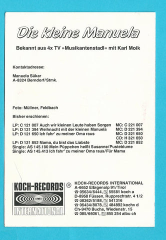 Autogrammkarte Die kleine Manuela. Großformat. Zustand: stark bestoßen.
