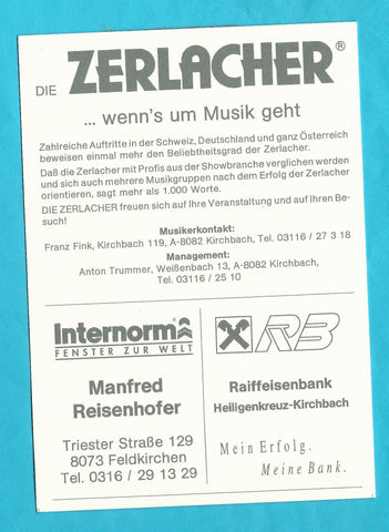 Autogrammkarte Die Zerlacher. Kirchbach.