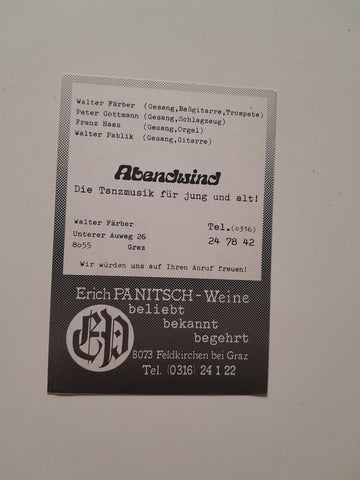 Autogrammkarte Abendwind. Tanzmusik für jung und alt. Walter Färber, Graz. Großformat. Zustand: gut.