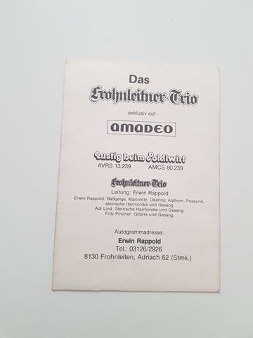 Autogramm-Karte Das Frohnleitner-Trio. Leitung: Erwin Rappold. Großformat. Zustand: gut, leicht bestoßen.
