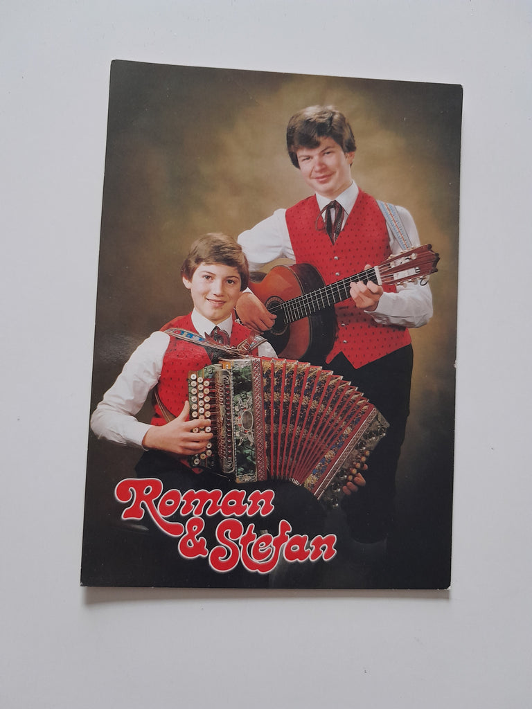 AK Autogrammkarte Roman & Stefan. Großformat. Verlag: List. Zustand: obere Ecken und am oberen Rand geknickt.