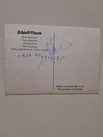 Autogrammkarte Schöckl-Buam. Franz Jantscher, Hofstätten 46, Kumberg. (signiert) Zustand: leicht bestoßen.