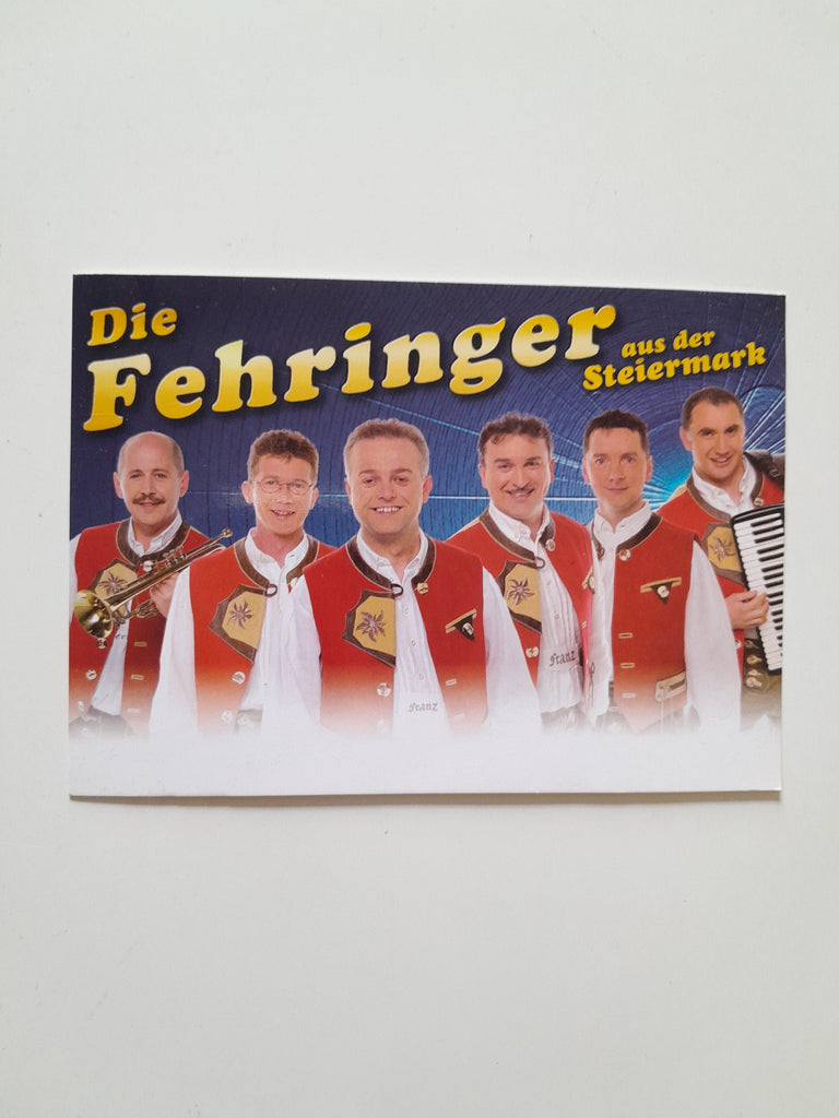 Autogrammkarte Die Fehringer aus der Steiermark. Franz Gingl Fehring. Großformat. Zustand: obere Ecken und am linken Rand geknickt.