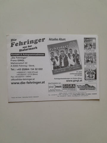 Autogrammkarte Die Fehringer aus der Steiermark. Franz Gingl Fehring.