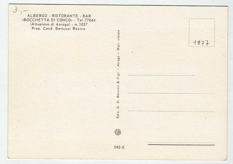 AK Albergo Ristorante Bar Bocchetta di Conco. (Altopiano di Asiago) Ungelaufen. Großformat. Verlag: C.D. Bonomo & Figli Asiago. Nummeriert: 092-E. Zustand: gut, geringe Randläsuren.