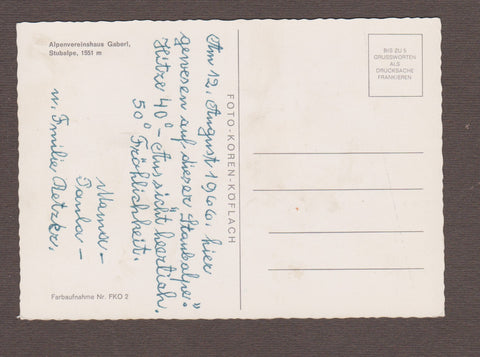 AK Alpenvereinshaus Gaberl. Stubalpe. Ungelaufen. Großformat. Verlag: Koren. Nummeriert: FKO 2. Zustand:linkes oberes Eck angeknickt, Rückseite leicht fleckig, sonst O.k.