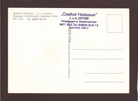 AK Alpl. Gasthof Holzbauer. J. u. A. Leitner. Rosegger‘s Waldheimat. Ungelaufen. Großformat. Verlag: REPRO Stohl. Zustand: gut.