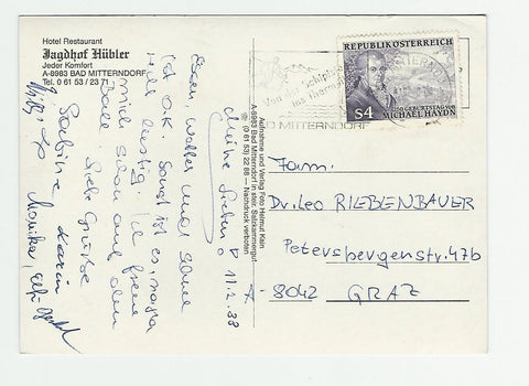 AK Bad Mitterndorf. Hotel Restaurant Jagdhof Hübler. Gelaufen. Großformat. Verlag: Kain. Zustand: linkes oberes Eck geknickt, sonst leichte Läsuren.