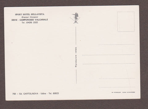 AK Camporosso Valcanale. Sport Hotel Bellavista. Kranner Giovanni. Ungelaufen. Großformat. Verlag: Cartolnova. Nummeriert: 759. Zustand: gut, leichte Läsuren.