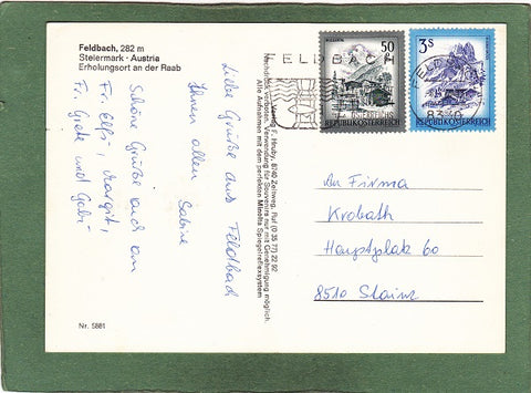 AK Feldbach. Gelaufen. Großformat. Verlag: Hruby. Nummeriert: 5881. Zustand: rechtes oberes Eck geknickt, sonst leichte Läsuren.