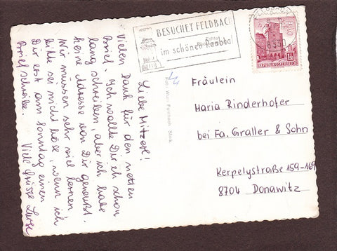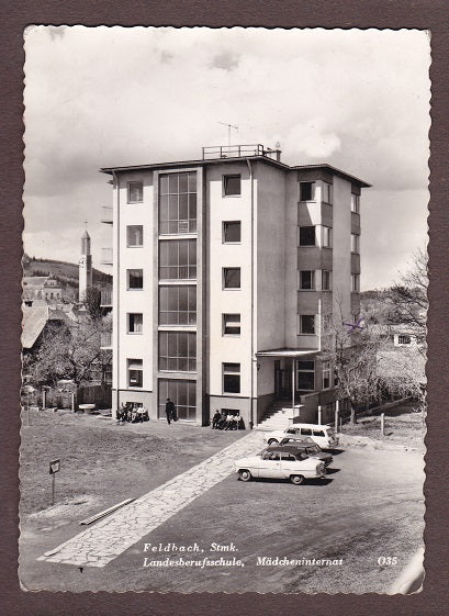 AK Feldbach. Landesberufsschule, Mädcheninternat. Gelaufen 1967. Großformat. Verlag: Wurm. Nummeriert: 035. Zustand: gut, rechtes unteres Eck angeknickt. (Variante: etwas nach links verschoben, selbe Aufnahme)