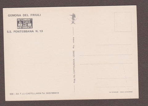 AK Gemona del Friuli. Intermarkt Al Fungo Ristorante. SS. Pontebbana N. 13. Ungelaufen. Großformat. Verlag: Cartolnova. Nummeriert: 930. Zustand: gut.