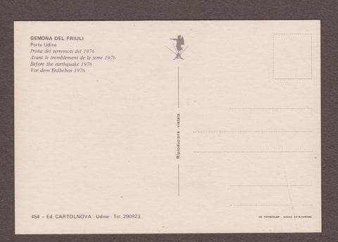 AK Gemona del Friuli. Porta Udine. Prima dei terremoti del 1976. Ungelaufen. Großformat. verlag: Cartolnova. Nummeriert: 454. Zustand: gut, leichter Knick unterhalb der Bildmitte.