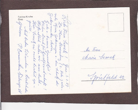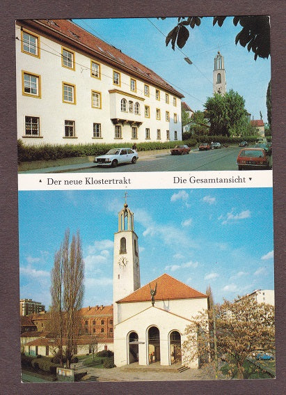 AK Graz. Fatima Kirche. Der neue Klostertrakt. Gesamtansicht. Ungelaufen, aber beschrieben. Großformat. Zustand: gut.