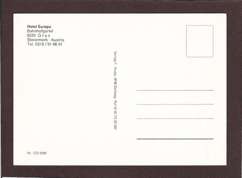 AK Graz. Hotel Europa. Bahnhofgürtel. Ungelaufen. Großformat. Verlag: Hruby. Nummeriert: CO 9208. Zustand: gut.