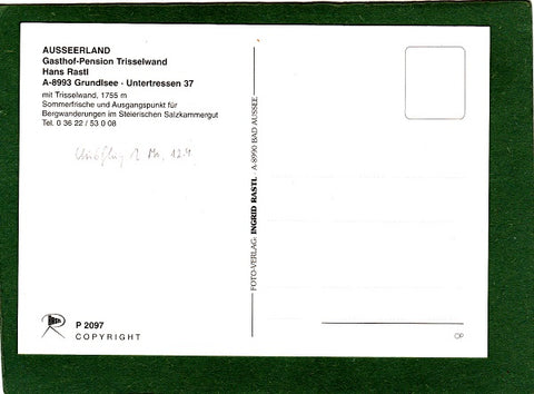AK Grundlsee. Untertressen 37. Gasthof Pension Trisselwand Hans Rastl. Ausseerland. Ungelaufen. Großformat. Verlag: Ingrid Rastl. Nummeriert. P2097. Zustand: leicht fleckig, sonst O.k.