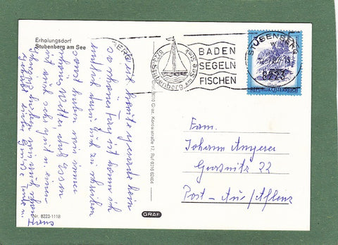 AK Grüße aus Stubenberg am See. Gelaufen 1982 in Stubenberg. Großformat. Verlag: Graf, Graz. Nummeriert: 8223-1118. Zustand: gut, rechtes oberes Eck leicht angeknickt, andere Ecken gering angestoßen.