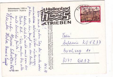 AK Hohentauern. Gasthof Tauernwirt. (1985) Gelaufen. Großformat. Verlag: Hruby. Nummeriert: 8864. Zustand: gut, Ecken wenig angestoßen.
