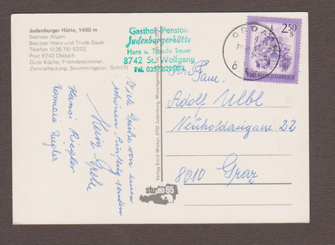 AK Judenburgerhütte Seetaler Alpen. Besitzer Hans und Trude Sauer. Gelaufen. Großformat. verlag: Mlakar. Zustand: gut.