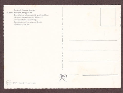 AK Kainisch, Knoppen 11. Gasthof Pension Kuchler. Ungelaufen. Großformat. Verlag: Rastl. Nummeriert: 2034. Zustand: obere Ecken wenig angeknickt, Kratzer in rechter oberer Hälfte.