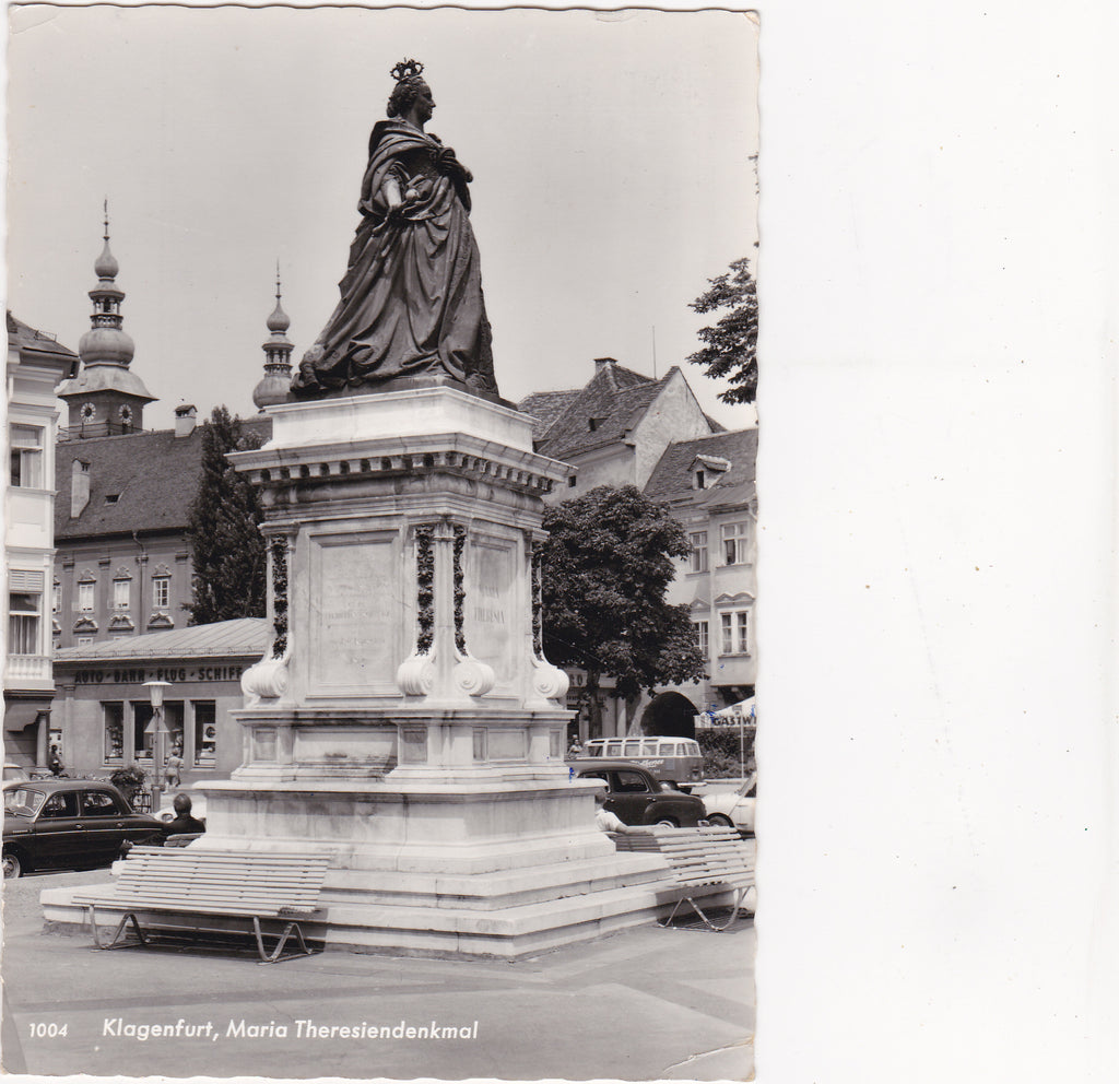 AK Klagenfurt, Maria Theresiendenkmal. Gelaufen. Großformat. Verlag: Gamberger. Zustand: gut, rechtes unteres Eck geknickt.