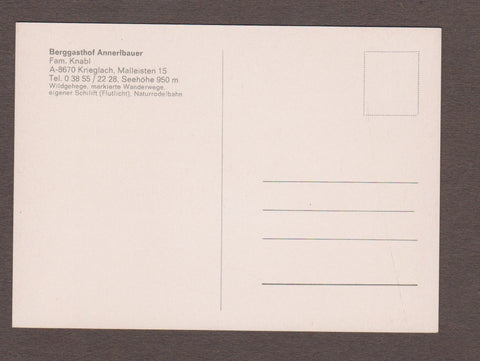 AK Krieglach. Malleisten 15. Berggasthof Annerlbauer. Fam. Knabl. Ungelaufen. Großformat. Zustand: gut.