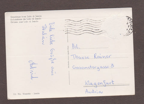 AK Lido di Jesolo. Gelaufen, aber Briefmarke wurde entfernt. Großformat. Verlag: Visentin. Zustand: Ecken leicht angestoßen.