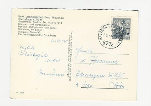 AK Mautern. Hotel Liesingtalerhof. Sepp Thewanger. Gelaufen. Großformat. Verlag: Hruby. Nummeriert: 5402. Zustand: gut.