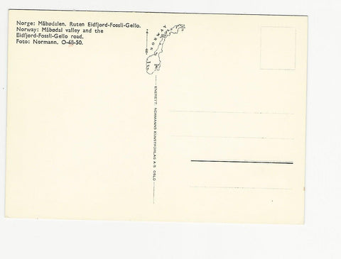 AK Norge: Mabödalen. Ruten Eidfjord - Fossli - Geilo. Ungelaufen. Großformat. Verlag: Normanns. Nummeriert: O-48-50. Zustand: gut.