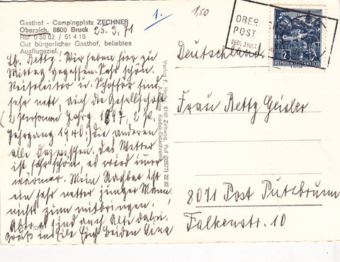AK Oberaich Gasthof - Campingplatz Zechner. Gelaufen. Großformat. Verlag: Hruby. Nummeriert: 5374. Zustand: gut, rechtes oberes Eck geknickt.