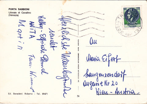 AK Punta Sabbioni. Litorale di Cavallino. Gelaufen. Großformat. Verlag: Benedetti. Nummeriert: 56. Zustand: gut, Ecken nur leicht angestoßen.