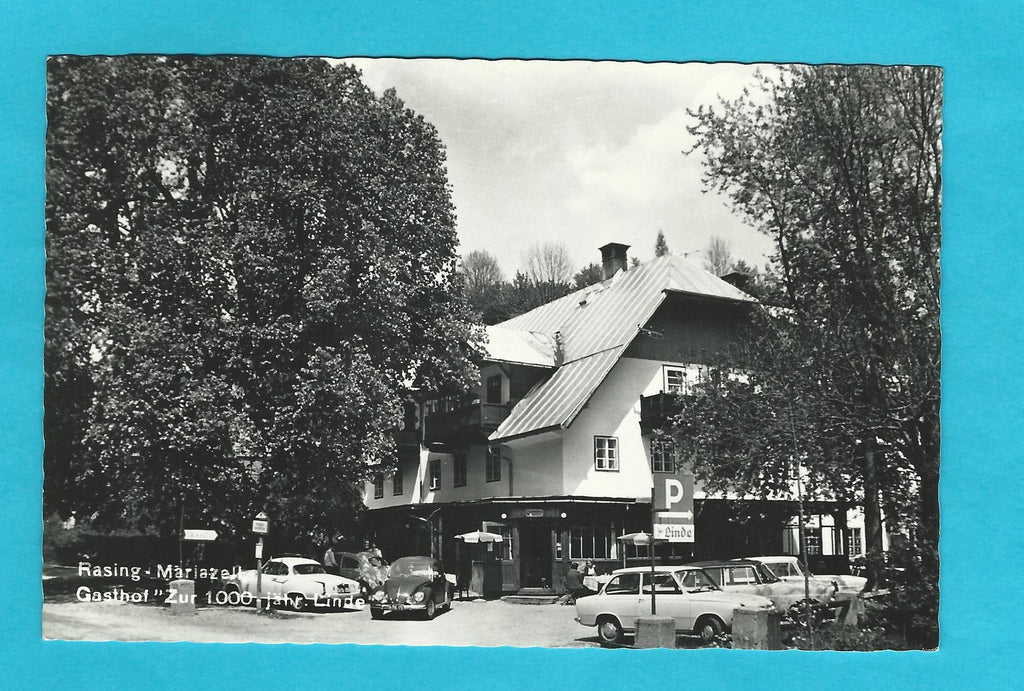 AK Rasing -Mariazell. Gasthof Zur 1000jährigen Linde. Gelaufen. Großformat. Verlag: Kellner. Zustand: Knick am oberen Rand in der Mitte, sonst leichte Läsuren.