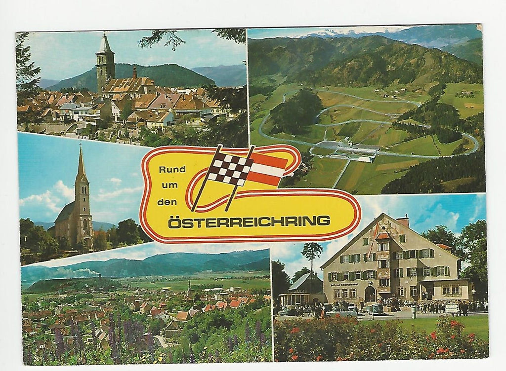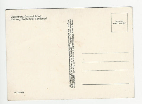AK Rund um den Österreichring. Knittelfeld-Zeltweg. Fohnsdorf. (1985) Ungelaufen. Großformat. Verlag: Hruby. Nummeriert: 6481. Zustand: Knicke über dem rechten oberen Bild.