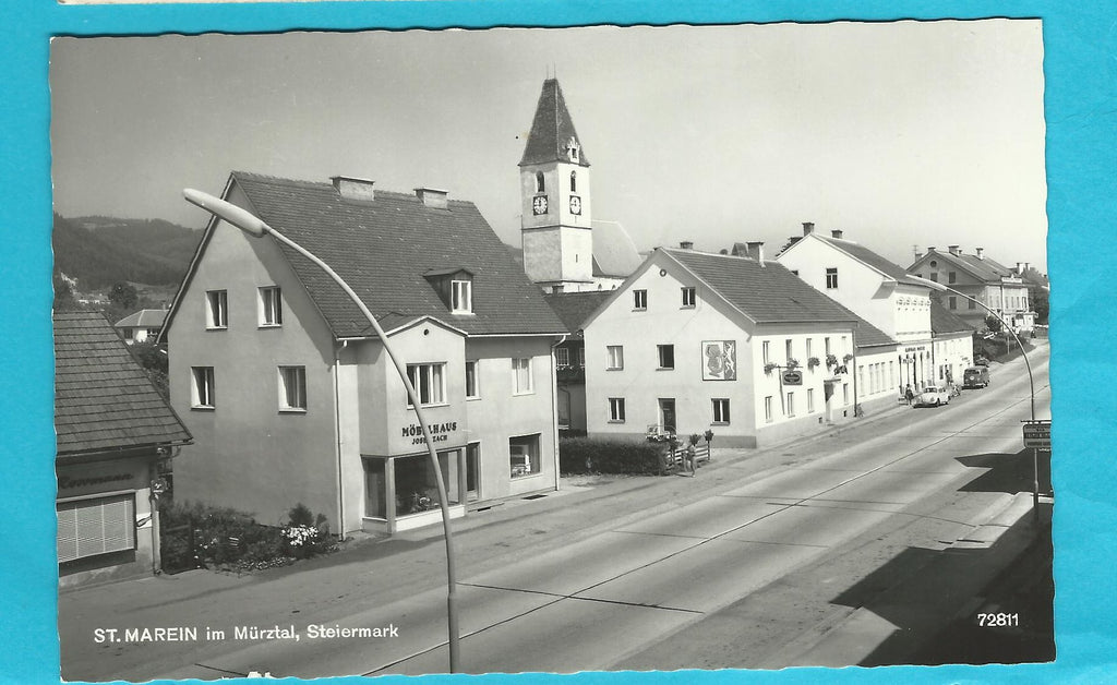 AK St. Marein im Mürztal. (1964) Gelaufen. Kleinformat. Verlag: Ledermann. Nummeriert: 72811. Zustand: gut, am unteren Rand in der linken Hälfte leicht bestoßen.