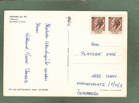 AK Tarvisio. Il Maercato. Ungelaufen, aber beschrieben. Großformat. Verlag: Cartolnova. Nummeriert: 377. Zustand: linkes oberes Eck geknickt, andere Ecken und am Rand etwas angestoßen, sonst leichte Läsuren.